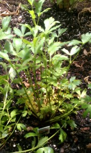 I grow lovage in my greenhouse so I can have something fresh all winter.  I have grown it outside, but our winters a cold enough to stop the growth or even cause die back, but it is hardy so it will generally return come warmer days.  A cold frame works well to grow lovage in during the cold months.  Lovage is a perennial that enjoys relief from the afternoon sun so it won’t get sunscald. One clump can spread 3 feet and launch towers of flower stalks, so give it some space.  When planting lovage will appreciate a little prep to the soil.  Add a shovel full of compost and a handful of kelp meal to the planting hole and mix with the existing earth.