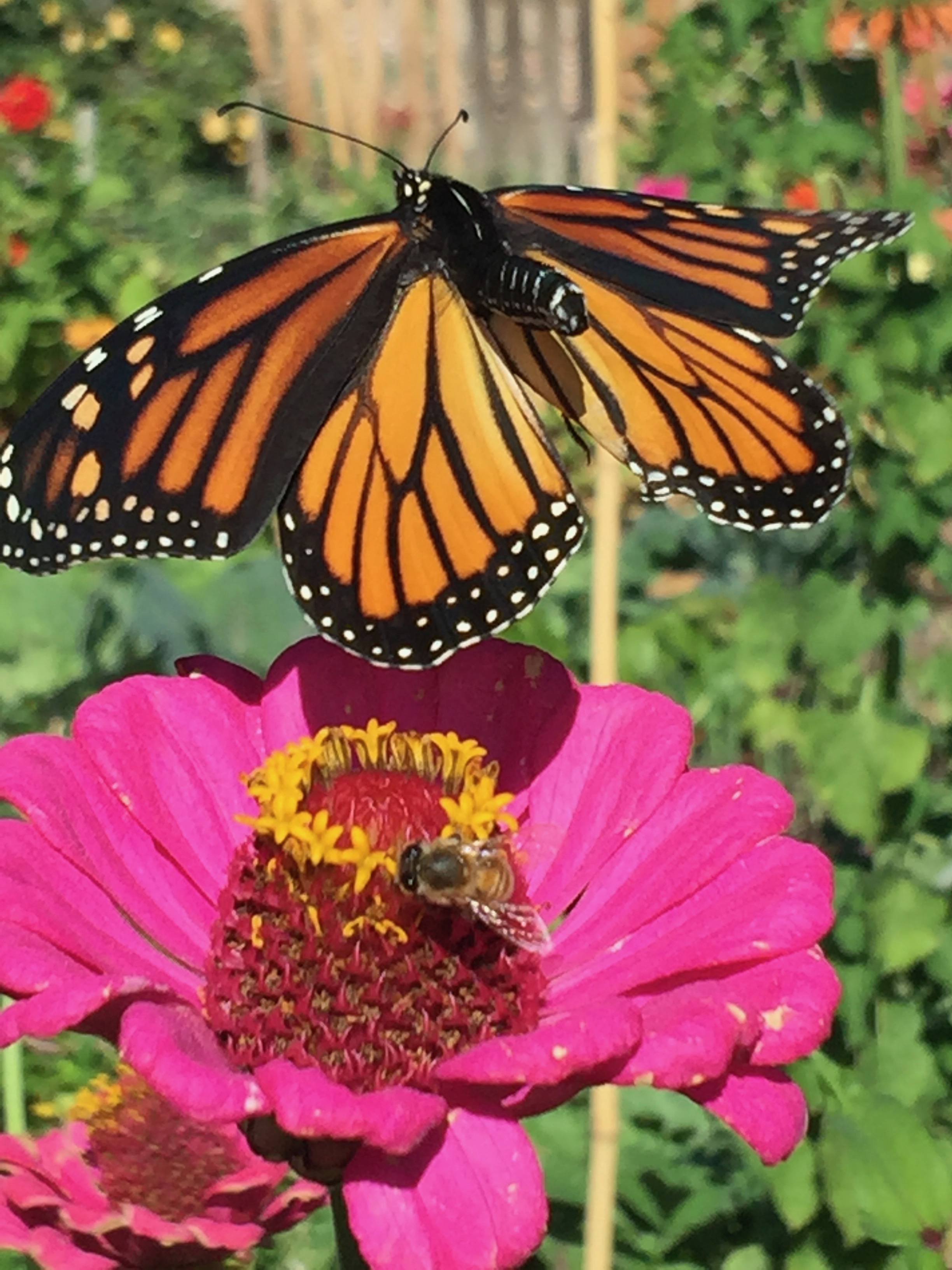 Zinnia flowers are great for pollinators including bees and butterflies!