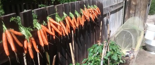 Remove the leaves after harvesting cutting close to the top of the root to improve storage. Store in a cool room or bag and place them in the refrigerator. Carrots should last for at least four weeks.