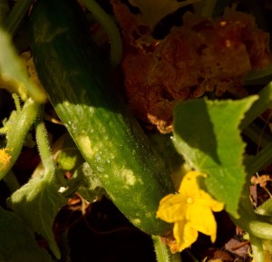 This year we have planted several different varieties of cucumbers. Muncher is top of the list of attack, while Marketmore fruits and have not been affected what-so-ever and the leaves are in the best shape.