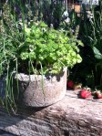 6. Take off plastic bag and remove pot from mold (pot with be slightly wet). Handle with both hands to assure you don’t break the pot.  Using a wire brush, stick or sandpaper, rough up the surface of the hypertufa for a more rustic appearance. Let sit for 2 to 3 weeks to dry completely.