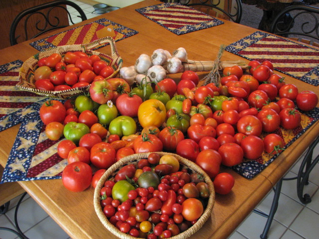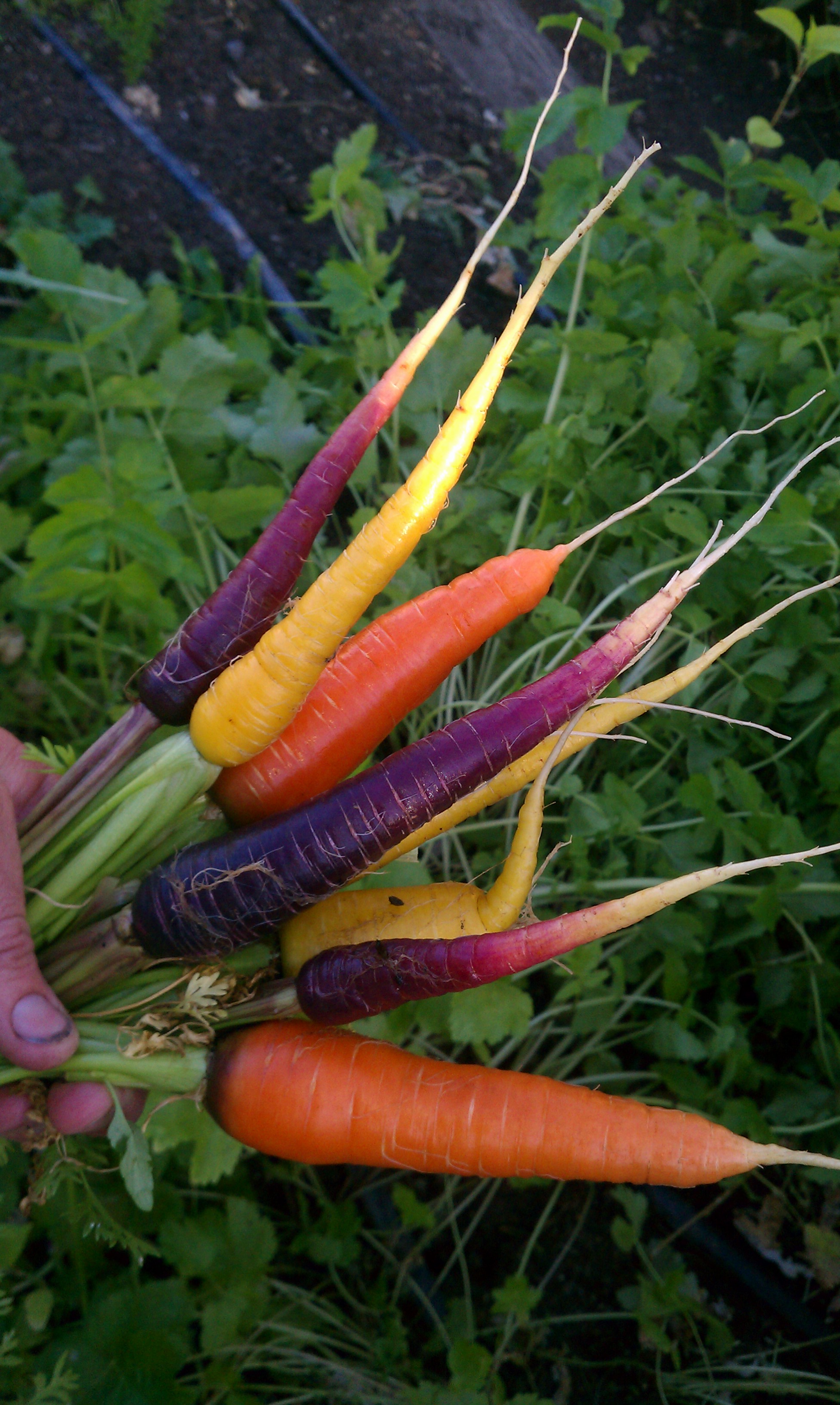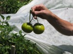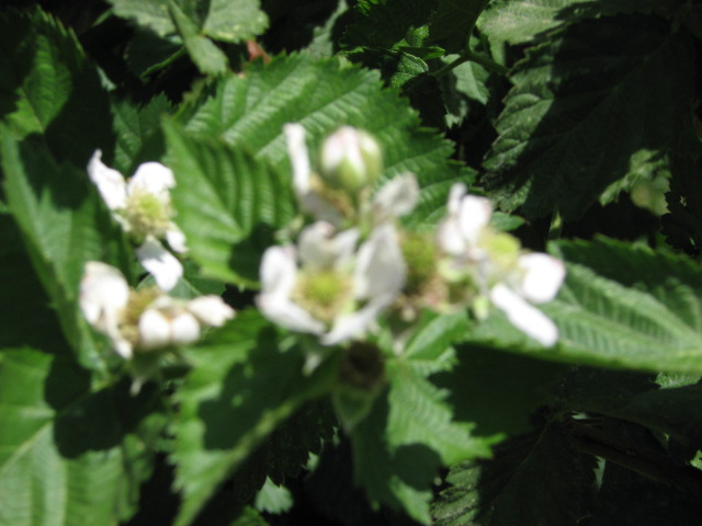 Boysenberries are in full swing now and picking daily is a must! Purple hands are a dead give away where I has hiding out this morning. Morning is the best time to pick most crops, as they are usually sweeter and juicier. A rustic berry tart is on the dessert menu tonight! They get an extra drink of water while they are fruiting. We are looking forward to the Triple Crown Blackberry harvest coming up shortly. They are loaded with green berries and white blossoms. I planted a Triple Crown Blackberry on our back patio winding around one of the pillars. What a fun focal point. And, you can eat it too! A toss of some acidic rich fertilizer for the last time this year and a layer of compost over the top gives them a boost and promotes healthy new growth for next years berries as well.