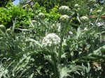 Checking the potato crop, I noticed the purple blooms. So a little digging around in the deep mulch layer found a handful of new potatoes for dinner tonight. These are my favorite type of potatoes. While the potato crop grows, I continue to mulch with compost around the plant, piling higher and higher until the compost reaches about a foot thick, making a perfect bed for new potatoes and a super easy harvest. New potatoes are so succulent and tender, they melt in your mouth. Their little skin just falls right off with the slightest rub. Cut into fourths, tossed with some fresh herbs and olive oil, grilled or baked makes a great easy side dish for a summer supper. Fresh! Luckily we will harvest new potatoes for the new several weeks until the foliage starts to die back, then it’s time for the main harvest.